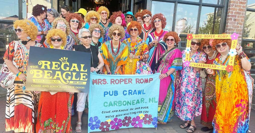 It would have been the stuff of nightmares for poor old Mr. Roper if he had been in Carbonear last Saturday for an episode of the 1970s television hit Three’s Company. There were Mrs. Ropers everywhere on Water Street. The women were on a pub crawl and on their way to the Stone Jug restaurant for a feast when they posed for this photo. It was all for a good cause with money raised from the pub crawl going towards the medical and travel expenses of Marilyn Bishop, who needs a double lung transplant. “We raised $1,200 for Marilyn and we all had a ball doing it. Win win situation,” said organizer Jennifer Sharpe. The contingent included, starting in the front row, from left: Lynnette Rose, Sara Earle, Marilyn Bishop, Josie Dawe, Winnie Neil, Donine Short, Ivy Lehr, Linda Baldwin, Marjorie Clarke; in the middle row, from left: Ada Slade, Donna Penney, Sonya Morgan, Victoria Boone, Brenda Morgan, Donette Carpenter, Jennifer Sharpe; and in the back row, from left: Kelly Antle, Madeleine Crawford, Liz Earle, Juanita Fahey, Mary Butt and Jenn Emberley. Ivan Morgan photo