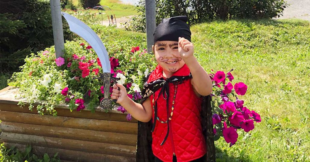 Stella Spacil, aged three-and-a-half, ventured in from St. John’s to try keelhauling some landlubbers on Topsail Beach this past Saturday as the Town of Conception Bay South held it’s annual Pirates Day. The would-be swashbuckler was happy to display her swordfighting technique for the camera.