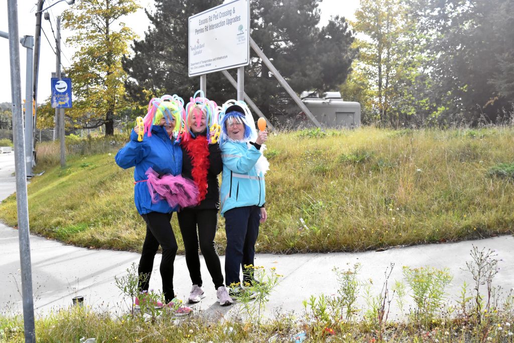 Members of the Sisters in Fitness Running Club, from left, Catherine Bailey, Shirley Wadland and Anne Marie Kenny cheered on the more than 250 runners who took part in the Town of Conception Bay South’s first ever T’Railway Trek Half Marathon last Saturday. Craig Westcott photo