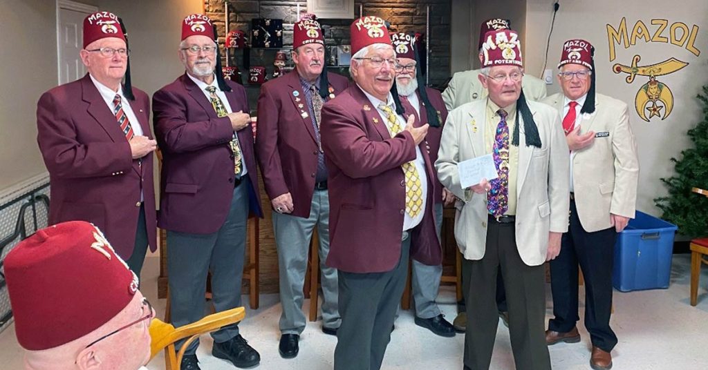 The members of the Trinity Conception Shrine Club are helping patients get to health care services thanks to a donation made at a meeting of the Mazol Shriners held in Clarenville earlier this year. Noble Howard Smith, President of the Trinity Conception Shrine Club and Lodge McLeod’s Junior Warden, presented Illustrious Sir Laurence Pike, Potentate of Mazol Shriners, with Lodge McLeod’s cheque for $2,000. The Illustrious Potentate expressed his appreciation for the generous donation from Lodge McLeod for the Patient Transportation Fund. On hand were, starting in the front, from left: Noble Howard E. Smith, and Illustrious Sir Laurence H. Pike; and in the back, from left: Nobles Harold E. Stanford, Clarence G. Mercer, Randall Crane, Randolph W. Smith, Illustrious Sir Lloyd T. Collins and Edward (Ted) Diamond.