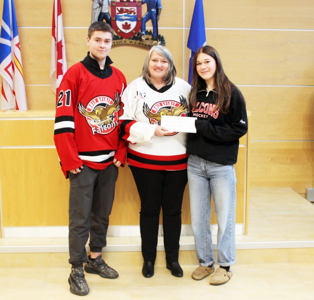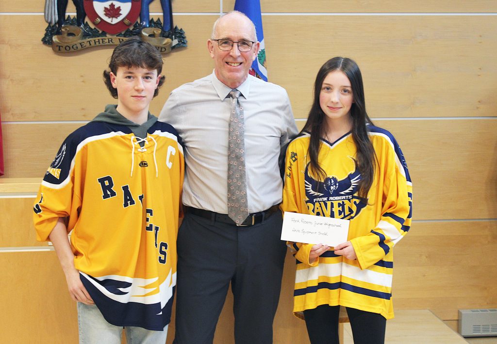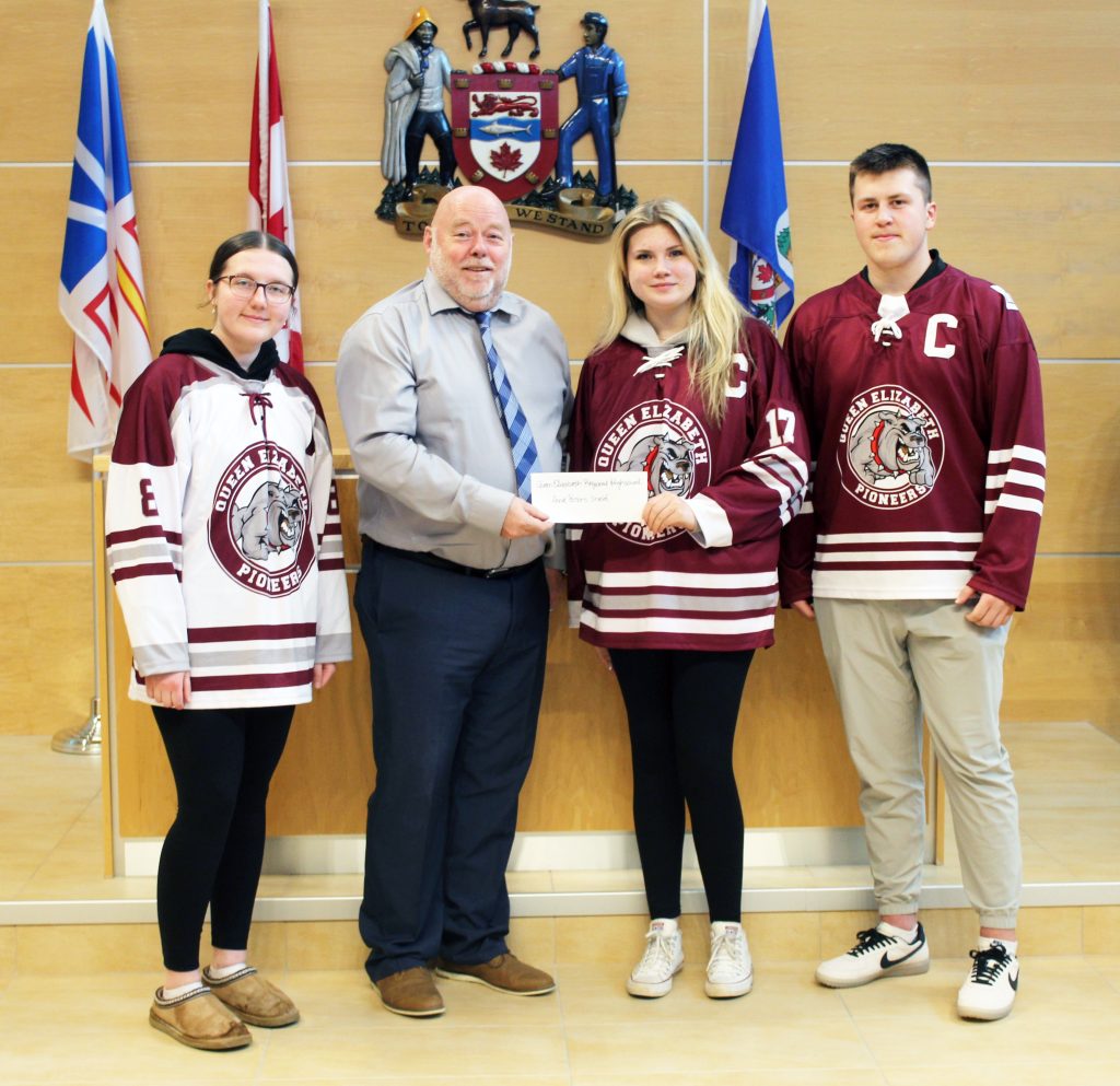 On hand to collect the funds at last week’s council meeting were representatives of Villa Nova Junior High, Frank Roberts Junior High, Holy Spirit High and Queen Elizabeth Regional High School. Each high school team received $1,517, while each junior high squad got $787.